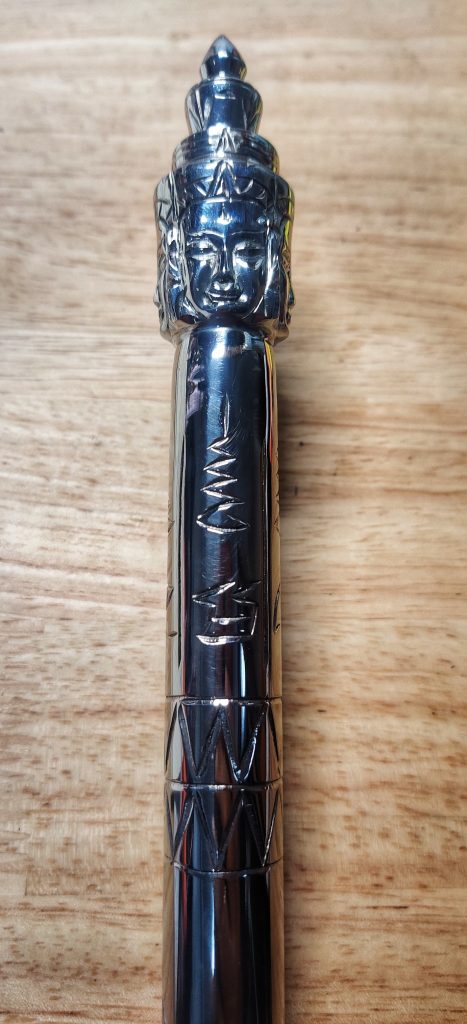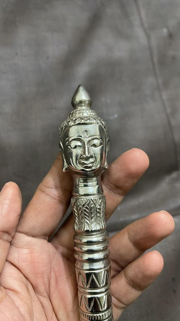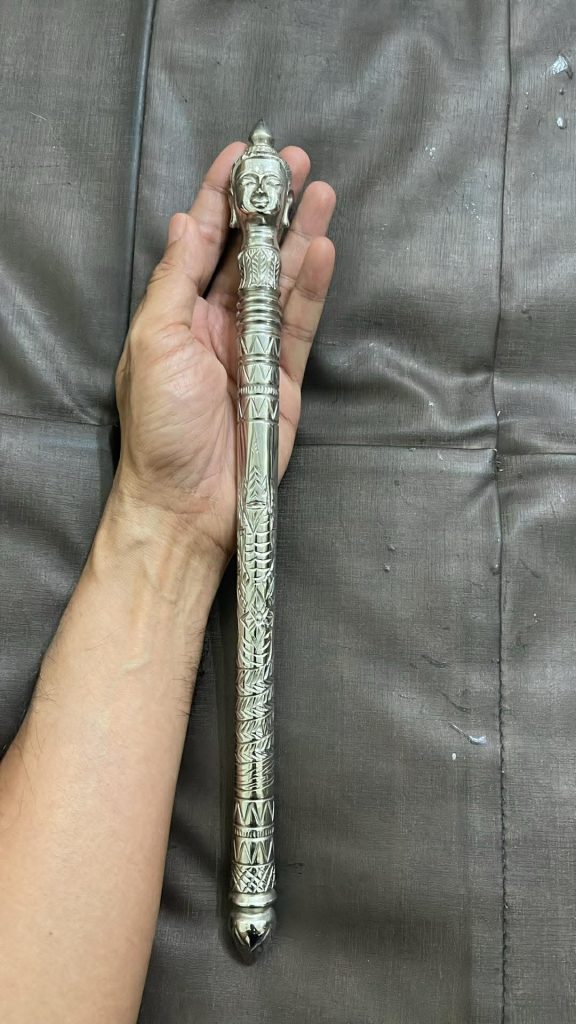 วันก่อนเดินถือคฑามาหาโยมโดยใส่ถุงไหมพรหมถักไว้ แค่เดินผ่านโยมที่นั่งสมาธิดีก็บอกว่าหลวงพี่ถืออะไรลงมา กระแสสวิ้งๆแผ่ออกมาเลย แรงมาก แค่เดินผ่านก็รู้สึกได้ … แต่จริงๆยังมีคฑาอีกแบบที่ไม่ใช่เศียรเป็นพรหม เป็นของสูงกว่านี้ ดูได้ตามรูป ลงให้ชมเป็นความรู้ว่า สิ่งที่แปลกอัศจรรย์ยังมีในโลกใบนี้