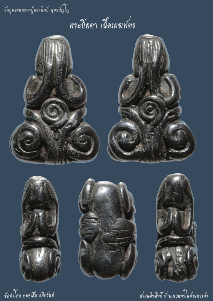 พระปิดตาชุดนี้เป็นพระปิดตาที่ หลวงปู่ใหญ่นำมาถวายหลวงปู่ทองทิพย์ คราวงานบุญเดือนสาม โดยมาในรูปลักษณ์พระหนุ่มราว อายุ 40 ใช้ชื่อแฝงว่า “พระธงชัย” มา แบบกายมนุษย์นี่แหละ พระส่วนใหญ่ผมได้ถวายหลวงป๋าสร้างเจดีย์ เหลืออยู่แค่5 องค์