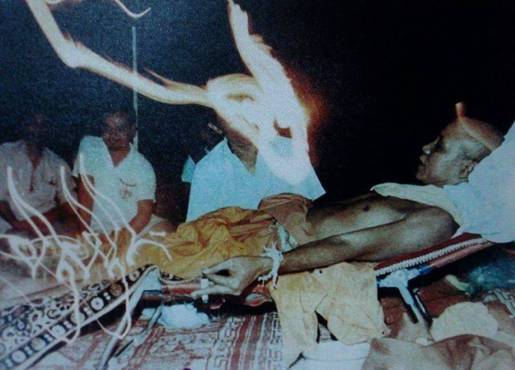 หลวงปู่ พูดว่า ก็ เทวาเข้ามาและเทพทั้งหลายท่านลงมายินดีด้วยลงมามาช่วยเป็นพลังและเมื่อคืนนี้ก่อน หลวงปู่จะทำวัดหลวงปู่ หลวงปู่เล่าให้ฟังว่าหลวงปู่ทองทิพย์ท่านลงมาถามว่าพากันทำอะไรหลวงปู่เลยตอบว่าเป็นพระศรีพอพูดแค่นี้