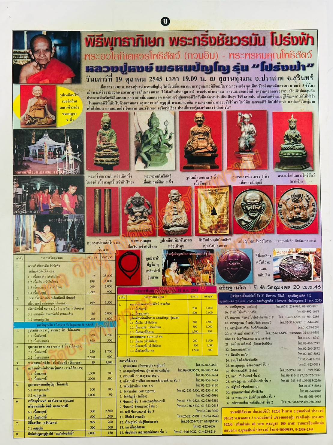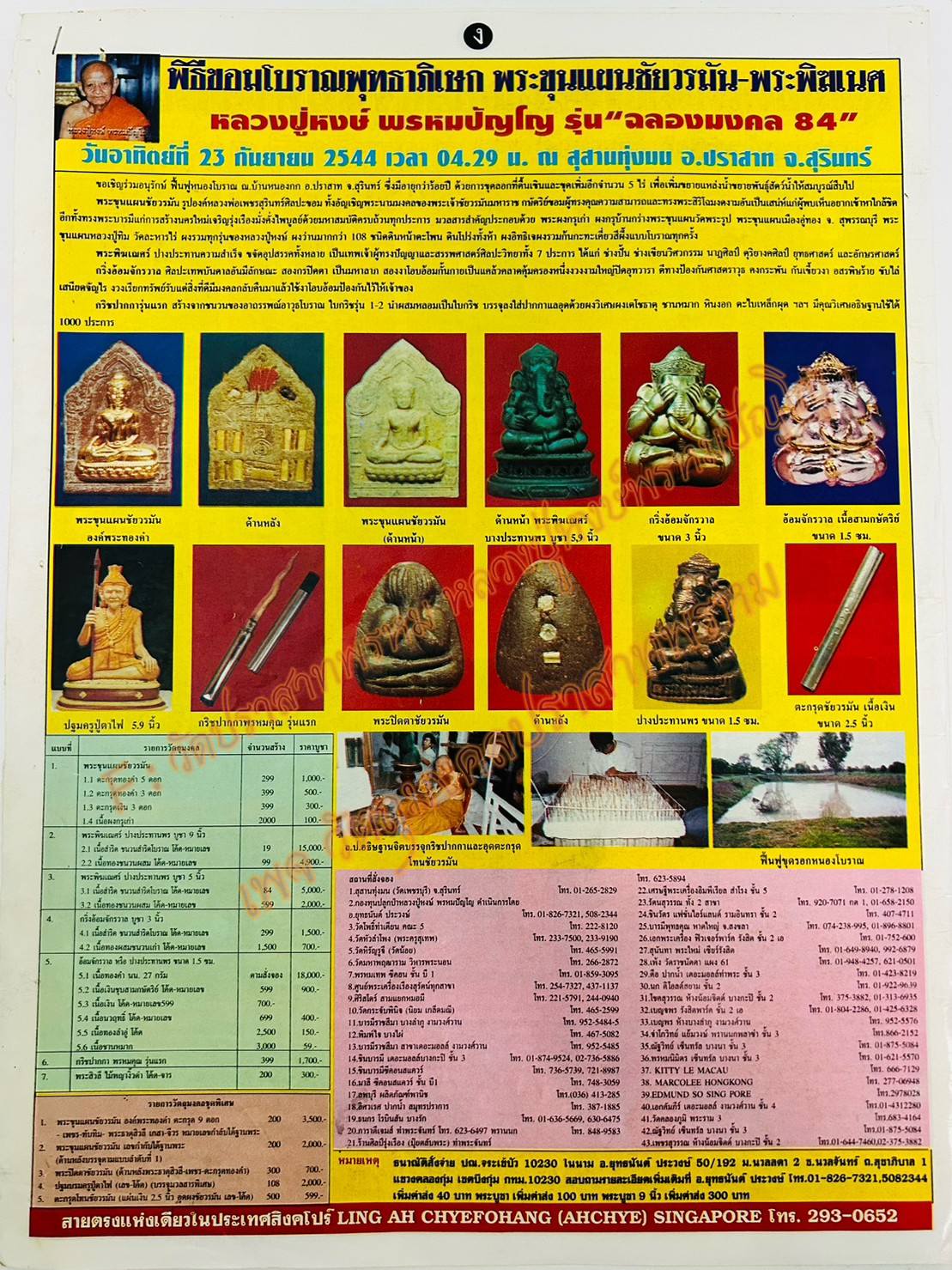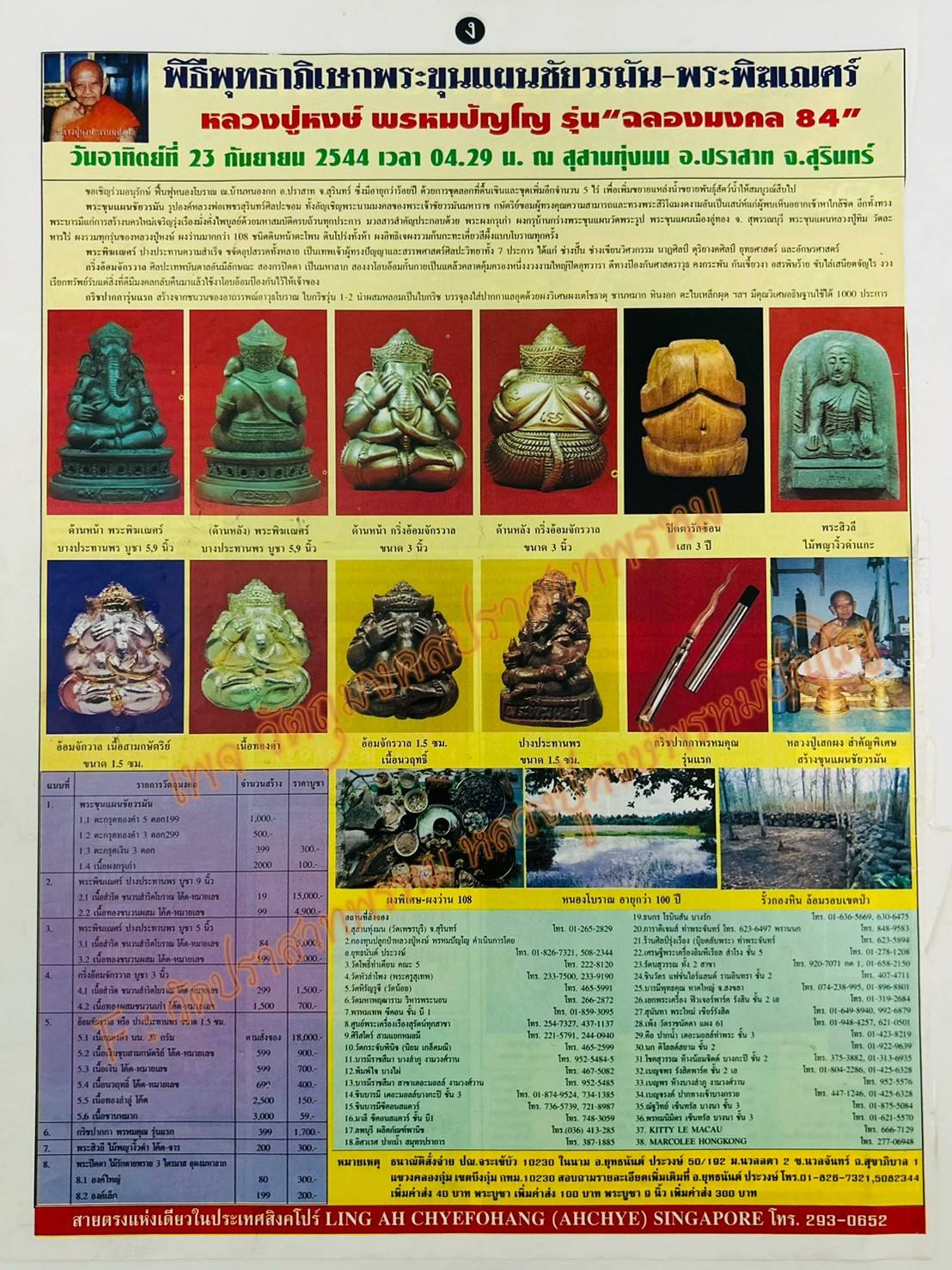 ——ใครที่ชอบเครื่องรางของขลังประเภท หนุมาน ขอบอกว่า หนุมานไชโย รุ่นฉลองศาลา ภาคชนะมาร (รับโบนัส ปูนบำเหน็จความดี) เปี่ยมด้วยความศักดิ์สิทธิ์ครบเครื่องทั้ง เชิงบู๊ และ บุ๊น ขนาดองค์จริงยังมาร่วมในพิธีด้วย เรื่องนี้ในปี 2547 หลังเสร็จพิธีพุทธาภิเษก เสริมมงคลครอบครูจักรวาล ซึ่งหลวงปู่หงษ์ได้อธิษฐานจิตปลุกเสกพร้อมหลวงพ่อโสธรรุ่นแรกประจำสุสานทุ่งมน หลวงปู่ได้รับรองด้วยเมตตาที่มีต่อศิษย์ถึงหลวงพ่อโสธรว่าเป็นพระหมอที่มีความศักดิ์สิทธิ์เป็นอย่างมาก หลวงปู่ยังทักว่า “ให้เชิญหลวงพ่อโสธรรุ่นนี้ไปแขวนเลี่ยมติดตัวน๊ะ” และบอกถึงนิมิตในครั้งนี้ว่านอกจากครูบาอาจารย์มากันมากแล้ว หนุมานก็มาร่วมในพิธีครั้งนี้ด้วย สุดๆ !?!! ครับ แค่นี้ก็ขลังสุดๆ เกินกว่าคำว่าเครื่องรางของขลังซะอีก ท่านที่เคยติดตามเกล็ดบารมีของหลวงปู่หงษ์มาตลอดคงทราบดีว่า เวลาหลวงปู่หงษ์เสกหนุมานคราใด ท่านจะทราบได้ทันทีแม้ไม่ได้เห็นวัตถุมงคลทั้งหมด เพราะครูบาอาจารย์จะบอกให้รู้เอง เช่น ในอดีตที่เคยเสกให้กับมูลนิธิหลวงปู่ทิม อิสริโก ยังไม่มีใครแจ้งรายละเอียดทั้งหมดให้หลวงปู่ทราบ แต่เมื่อประกอบพิธีอธิษฐานจิตเชิญครูบาอาจารย์แล้ว หลวงปู่ทราบได้ทันทีครับว่ามีเครื่องรางประเภท หนุมาน อยู่ในพิธีด้วย ครั้งนั้นหลวงปู่หงษ์ พรหมปัญโญ ซึ่งมีชื่อเสียงโด่งดังอยู่ในขณะนี้ ได้ถามอาจารย์ชินพรว่า “มีใครสร้างหนุมานให้เสกด้วยหรือ เพราะพระนารายณ์ เสด็จลงมาในพิธีด้วย” อาจารย์ชินพร ประธานมูลนิธิหลวงปู่ทิม อิสริโก จึงหยิบใบส่งของออกมาอ่านก็พบว่านอกจากรูปหล่อพิมพ์ยืนขนาดใหญ่และพระเครื่องอื่นๆ แล้ว ยังมีหนุมานเนื้อโลหะอีก 500 ตน และมัจฉานุเนื้อโลหะอีก 500 ตน หนุมานผู้พ่อและมัจฉานุผู้ลูกจึงปลุกเสกสำเร็จแล้วในวันนั้นจำนวนหนึ่ง นี่แหละครับเกล็ดเล็กน้อยกับบารมีการเสกหนุมานของหลวงปู่หงษ์ พรหมปัญโญ เครื่องรางของขลังแบบฤทธิ์แรงเป็น มหาปราบ ที่ครูบาอาจารย์ผู้ทรงภูมินิยมสร้างขึ้นเมื่อถึงเวลาเท่านั้น