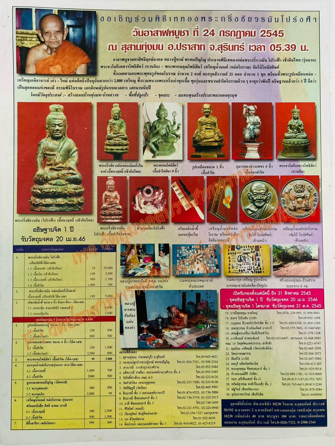“หลวงพ่อโสธร” เป็นการจัดสร้างครั้งแรกและครั้งเดียว โดยมีวัตถุประสงค์ เป็นการฉลองอายุ 87ปีและเพื่อสืบเสริมเติมต่อชะตาอายุถวายหลวงปู่…