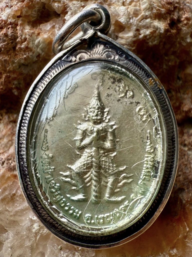 จัดสร้างเป็นเหรียญวงรีขนาดเล็กไม่มีหูเหรียญ ที่พบเห็นมีเนื้อกะไหล่เงินและเนื้อทองแดงรมดำ ด้านหน้าเป็นรูปหลวงปู่ทองทิพย์เต็มองค์ยกมือประทานพร ตอกโค้ด ด้านหลังรูปท้าวเวสสุวรรณประทับยืน มีอักขระยันต์พระคาถาพระพุทธเจ้าห้าพระองค์ “นะ โม พุท ธา ยะ” บริเวณโค้งส่วนบนของเหรียญทั้งสองด้าน สร้างจำนวนน้อย ในวาระเดียวกันนี้ยังได้สร้างรูปหล่อลอยองค์ท้าวเวสสุวรรณขนาดเล็กสำหรับแขวนบูชา และล็อกเก็ตรูปพระอาจารย์สอนไว้อีกด้วย พระอาจารย์สอนได้ทำการอัญเชิญครูบาอาจารย์ทำกาาอธิษฐานจิตปลุกเสก และนำเข้าร่วมพิธีกรรมในวาระสำคัญต่างๆ อีกหลายพิธี อาทิ งานปริวาส งานฝังลูกนิมิตวัดป่าเจริญธรรม (บ้านนาบั่ว) เป็นต้น