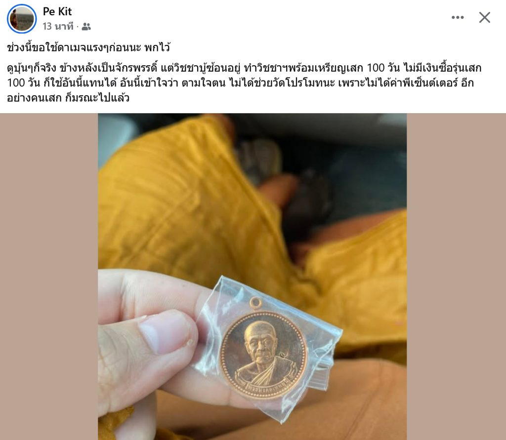 ดูบุ้นๆก็จริง ข้างหลังเป็นจักรพรรดิ์ แต่วิชชาบู้ซ้อนอยู่ ทำวิชชาฯพร้อมเหรียญเสก 100 วัน ไม่มีเงินซื้อรุ่นเสก 100 วัน ก็ใช้อันนี้แทนได้ อันนี้เข้าใจว่า ตามใจตน ไม่ได้ช่วยวัดโปรโมทนะ เพราะไม่ได้ค่าพีเซ็นต์เตอร์ อีกอย่างคนเสก ก็มรณะไปแล้ว