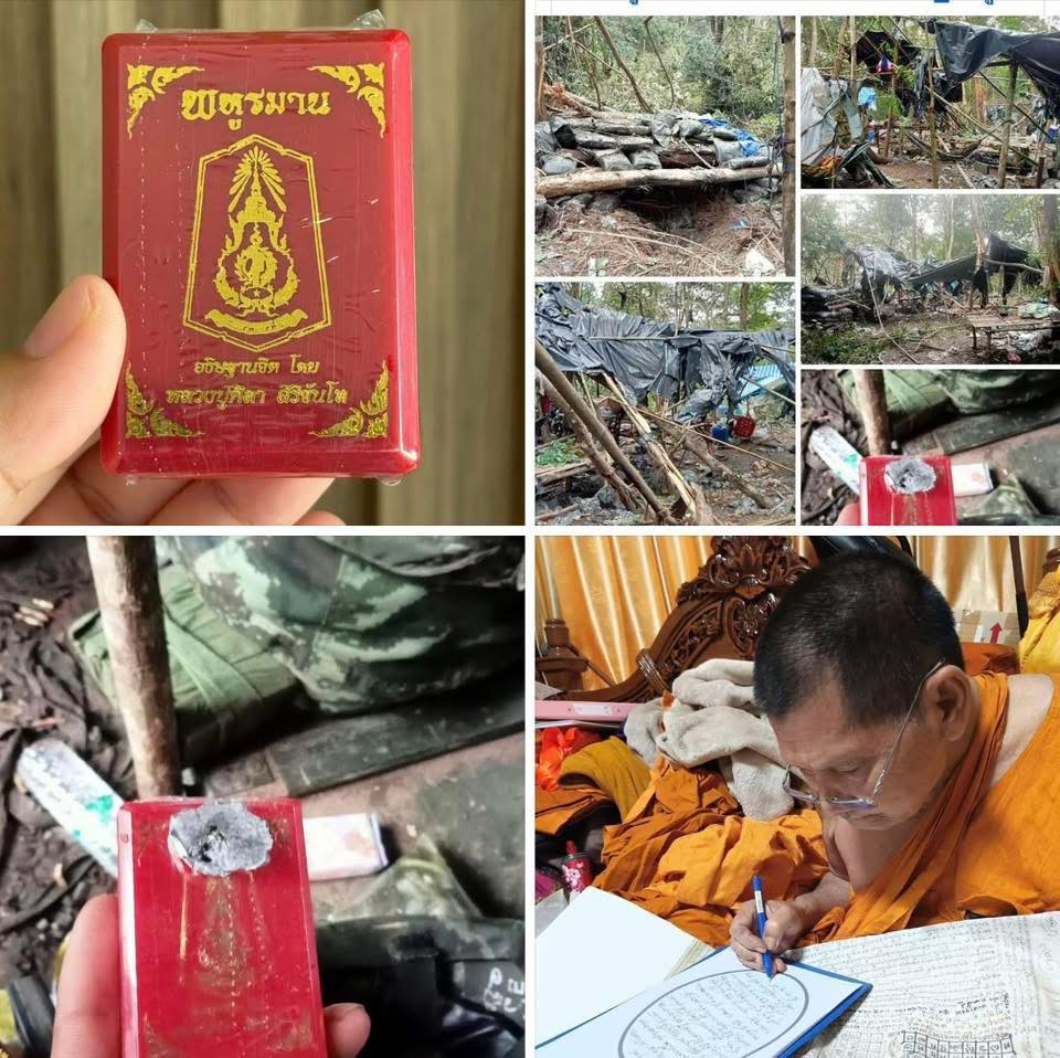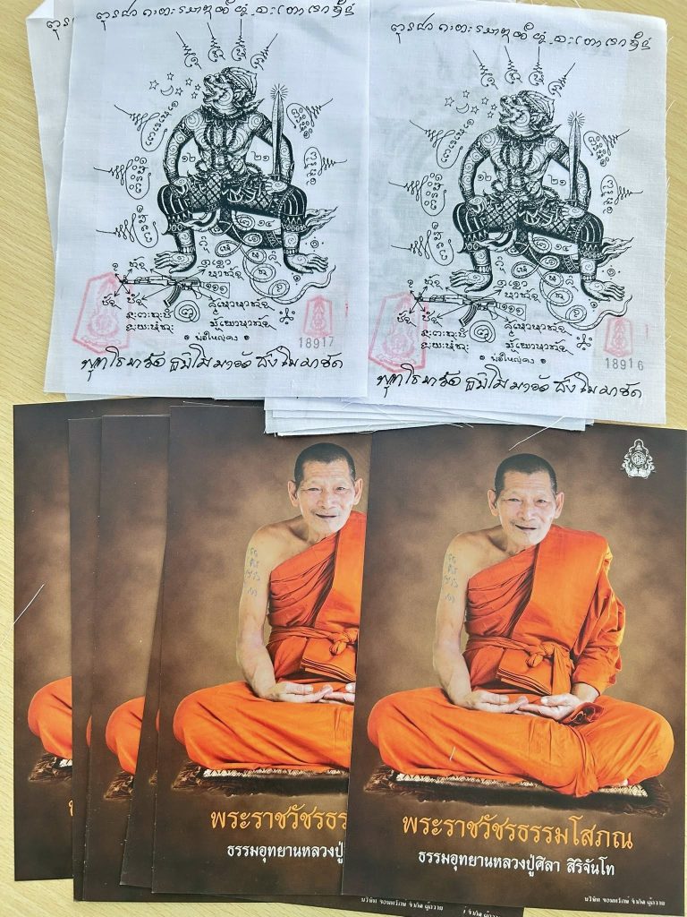 วัตถุมงคงที่เห็นสร้างรุ่นนี้พร้อมเหรียญก็มี ผ้ายันต์ผืนใหญ่และผืนเล็ก เสื้อยืดลำลองทหาร และภาพถ่ายหลวงปู่