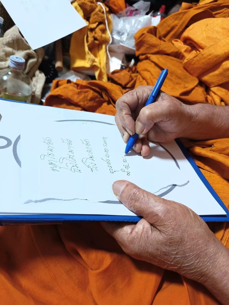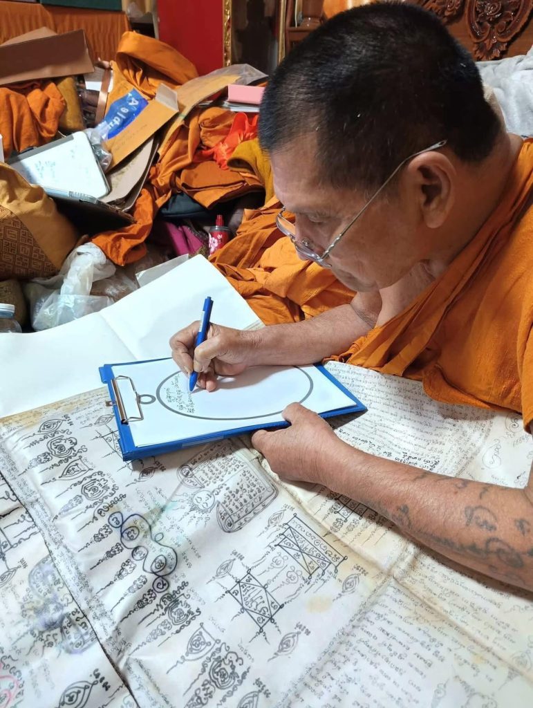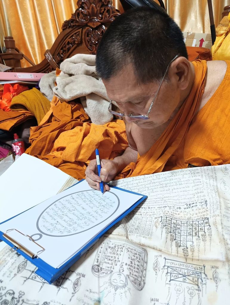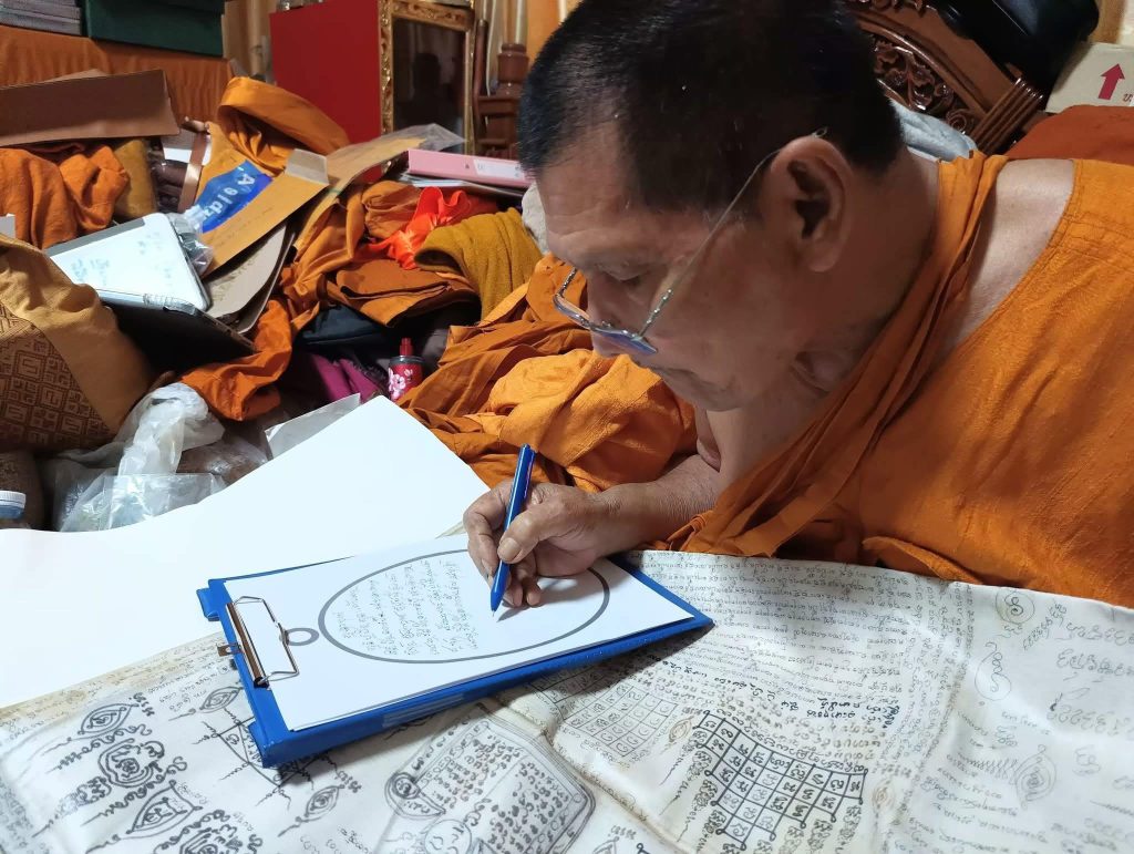 เมตตาลงอักขระเขียนยันต์ด้วยมือท่านเอง และตอกโค๊ตทุกเหรียญ